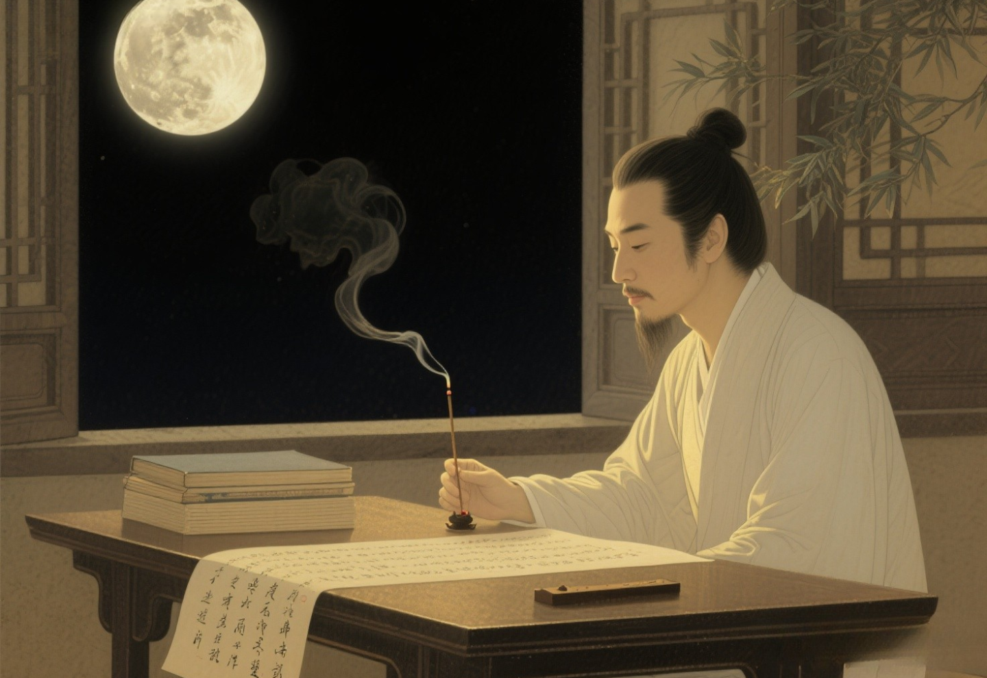 他愛在靜夜中點一縷香,讓氣味伴隨筆墨流動。